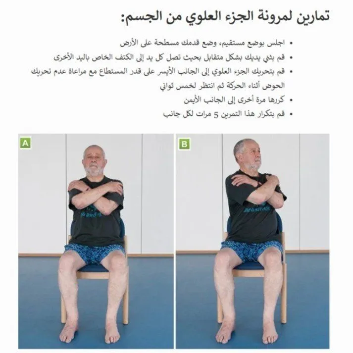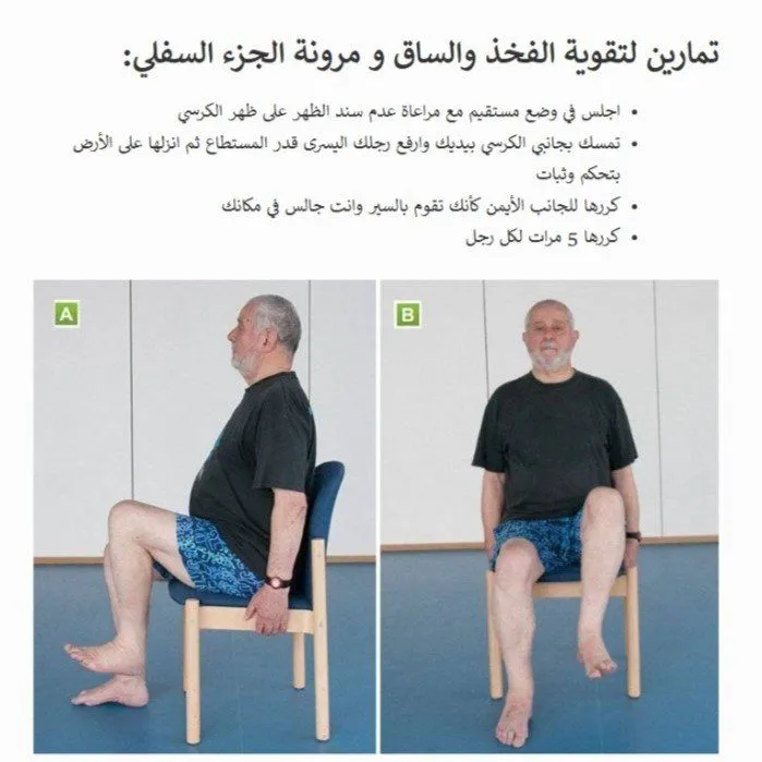 | الجلوس والقيام من الكرسي (Chair Stands) | الفخذين، الأرداف | يحاكي الحركة الأكثر أهمية في الحياة اليومية: النهوض والجلوس. |