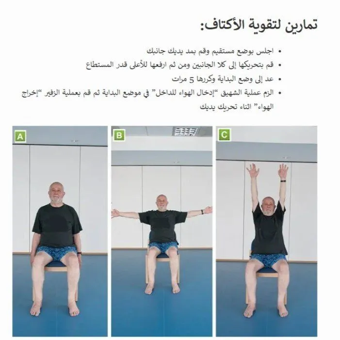 | ضغط الكتف (Shoulder Presses) | الكتفين | لتحسين المدى الحركي والقدرة على الوصول للأشياء في الرفوف العالية. |