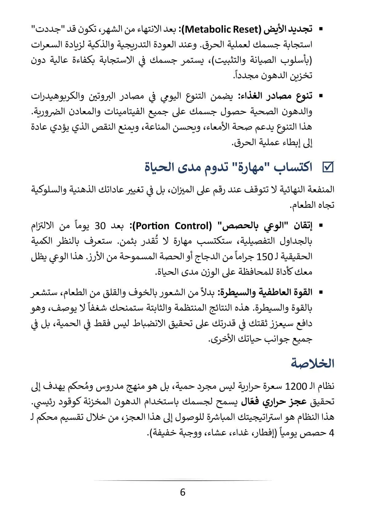حل جاهز (Done-for-you): جدول غذائي متكامل لمدة 30 يوم بمعدل 1200 كالوري، محسوب بدقة ليخلصك من عناء التفكير “ماذا سآكل اليوم؟”.