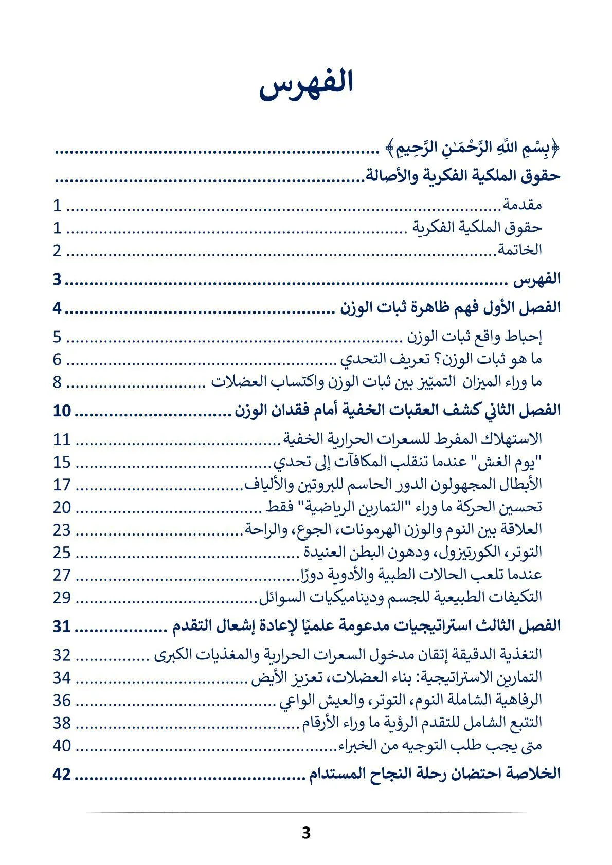 كنت أعاني من مشكلة ثبات الوزن لفترة طويلة، وهذا الكتاب كان بمثابة المنقذ! المعلومات عن السعرات الحرارية الخفية ودور النوم كانت مفاجئة ومفيدة جداً. بدأت أطبق الاستراتيجيات خطوة بخطوة، وشعرت بتحسن كبير في طاقتي وتحكمي بالشهية. شكراً لكم على هذا الدليل القيم. | سيد، 45 عام، رجل أعمال