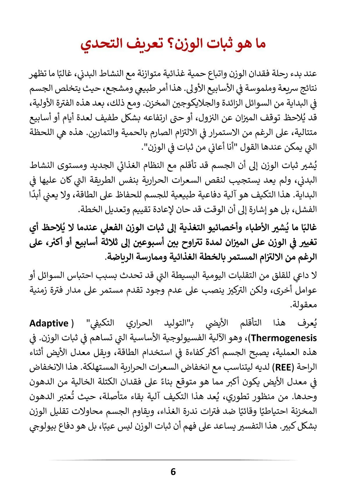 - تطبيق استراتيجيات ذكية لكسر الحاجز واستئناف فقدان الوزن بفاعلية.